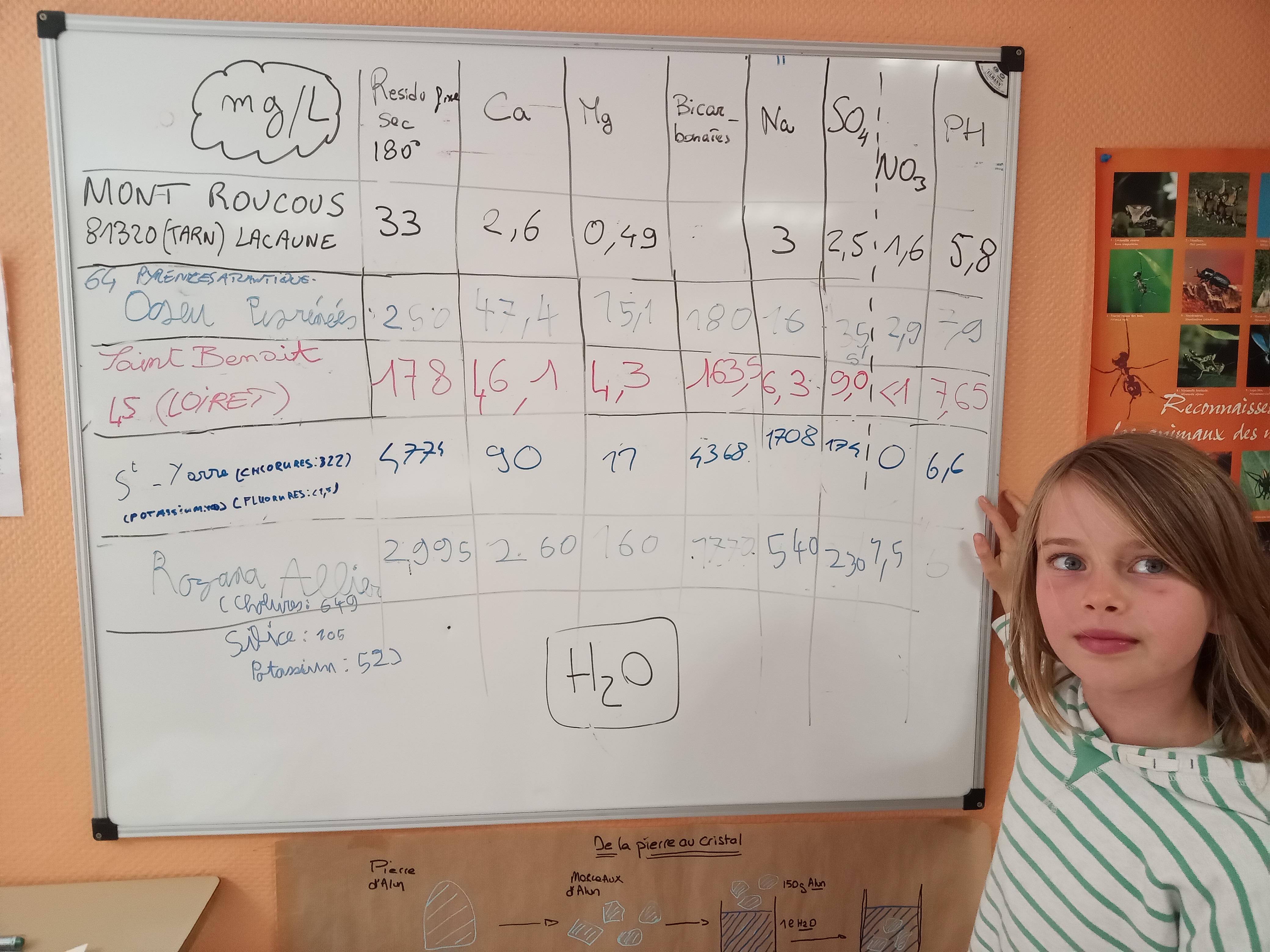 L’après-midi, nous avons transcrit dans un tableau les éléments minéraux que l’on trouve dans différentes eaux en bouteille. Ce fut ensuite le temps de la dégustation. Chacun avait ses préférences. Alison nous a expliqué le cycle de l’eau ainsi que les molécules et les atomes qui composent la matière. Nous les avons représentés sous la forme de boules en plastique. Il y a un nombre énorme de molécules (H2O) dans une cuillère à soupe d’eau.