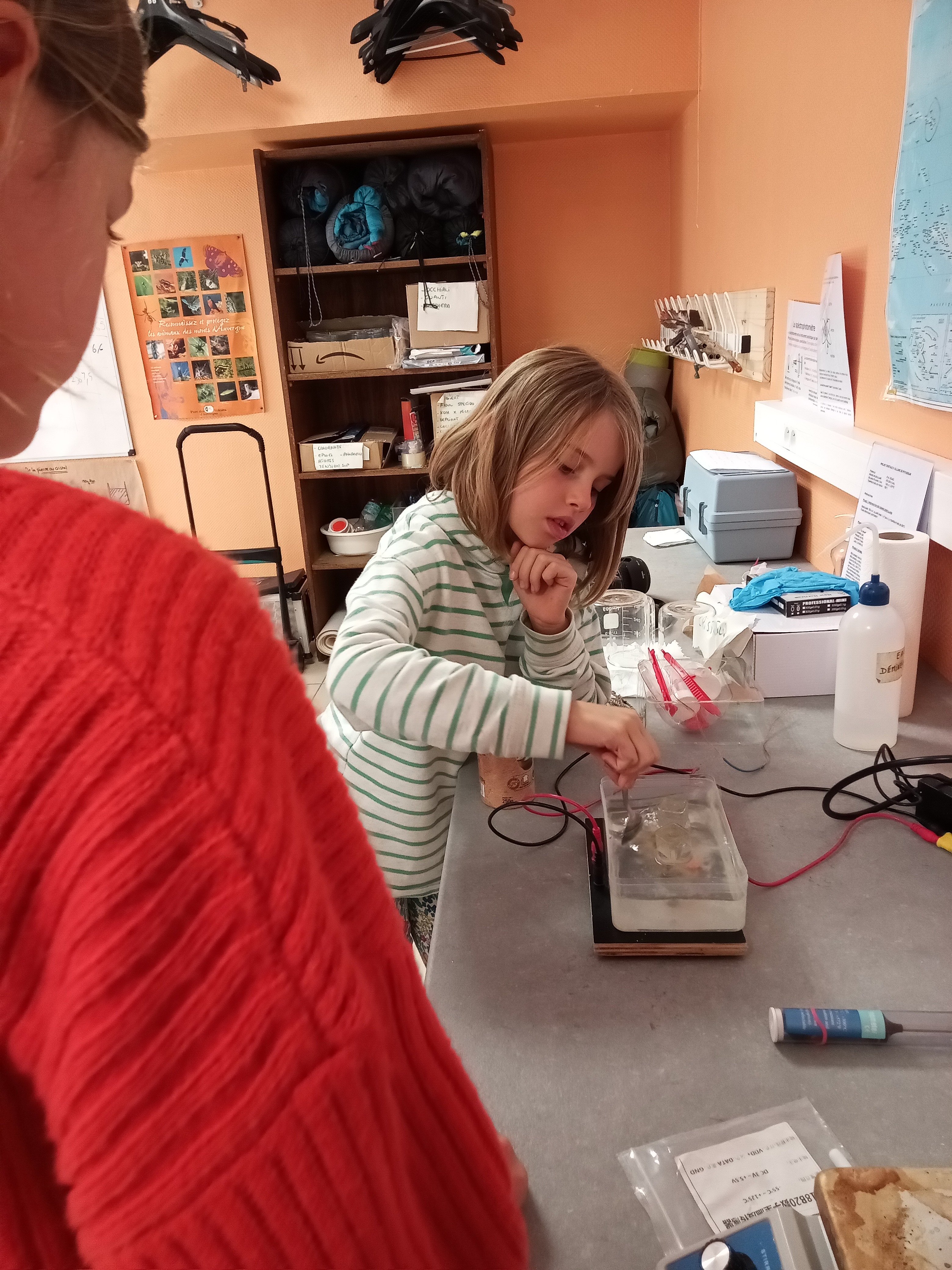 Après un petit déjeuner bien apprécié, quelle joie de découvrir le résultat de notre expérience lancée la veille ! Des cristaux, que nenni !! OUPS !