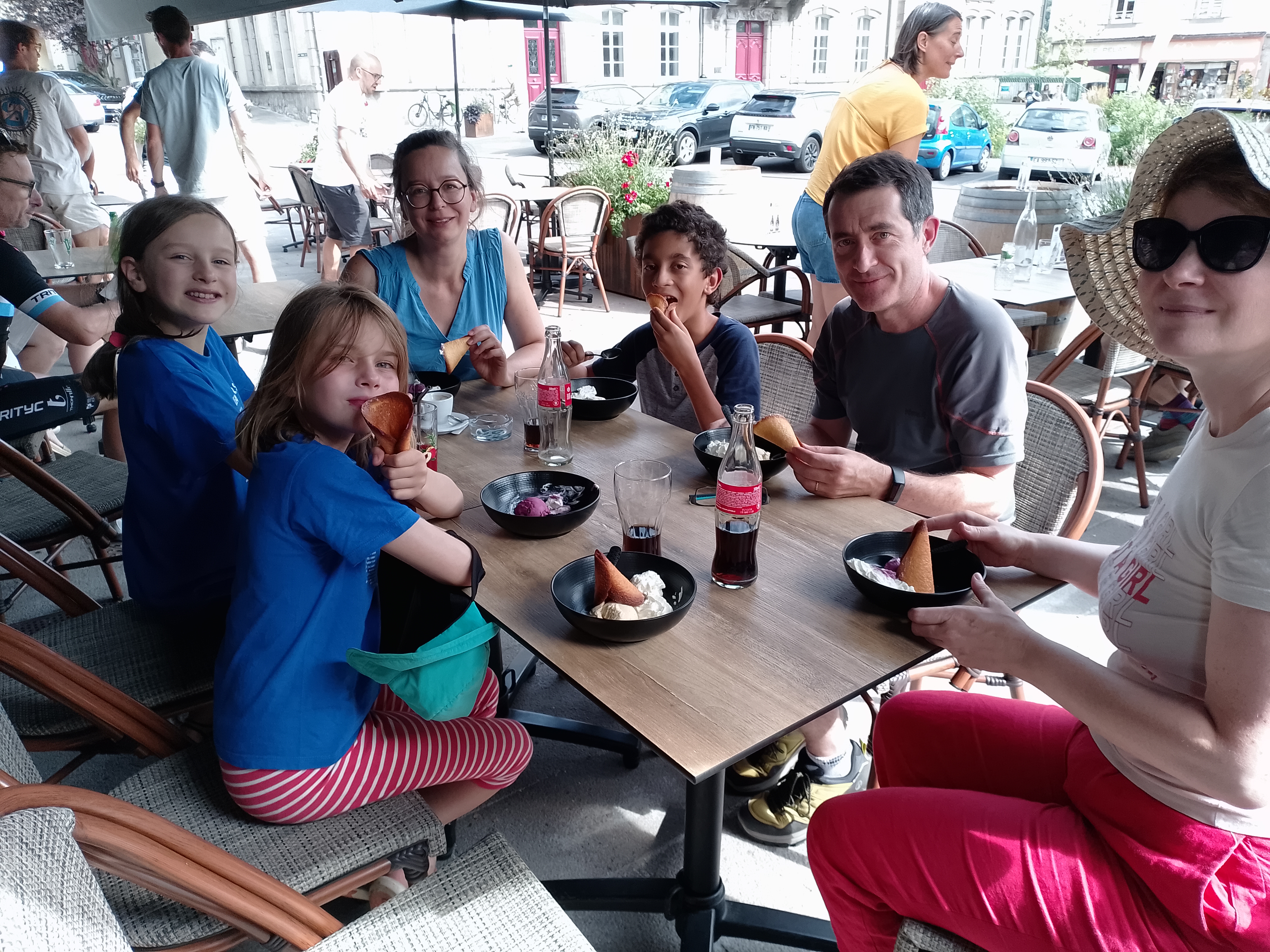 Pour finir, une petite glace cornet de Murat et c’est le retour vers Coltines et les douches de Chantarisa.