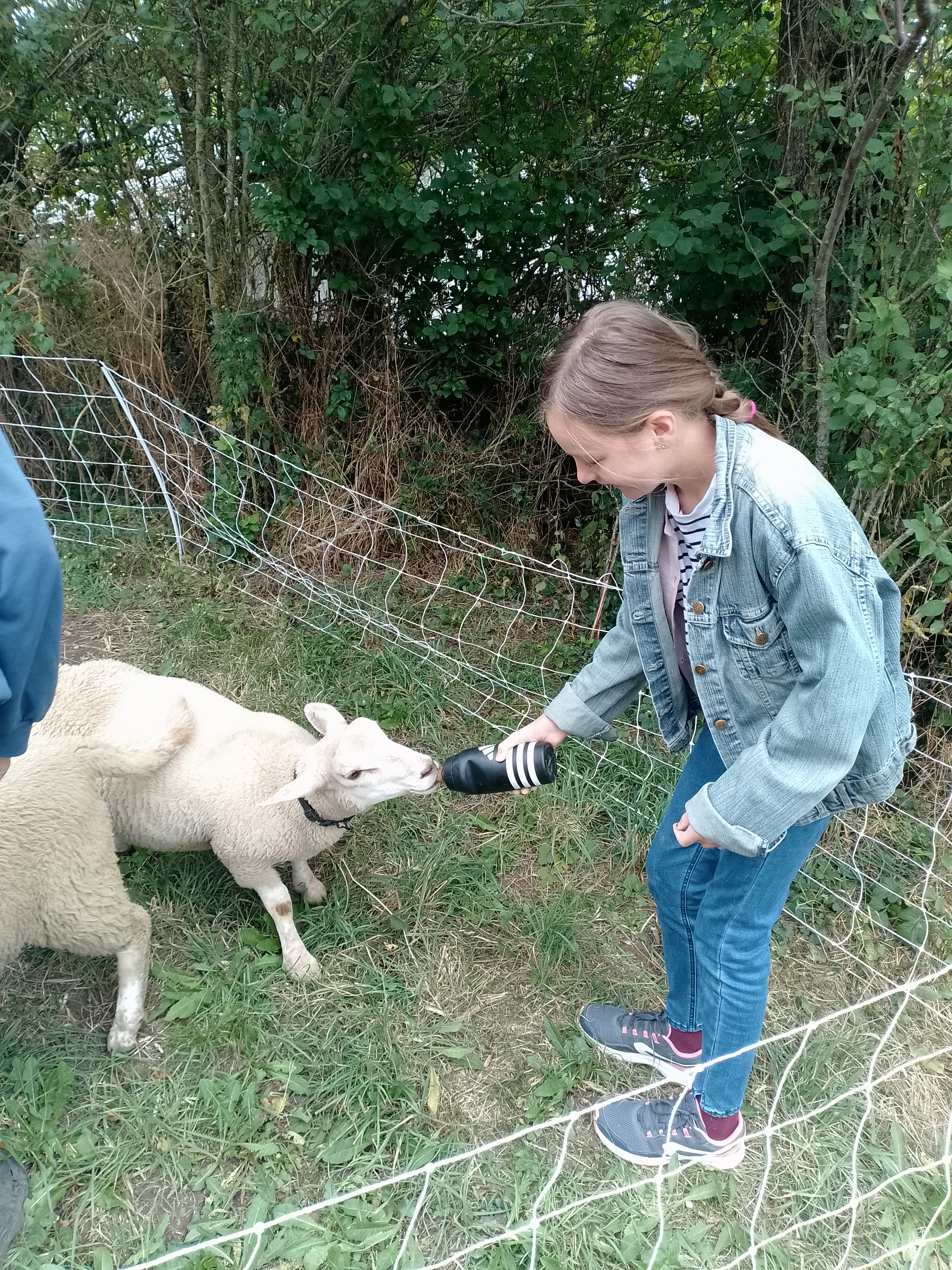 Nous avons caressé les animaux, nourri les poules, les moutons avec le biberon, et nous sommes montés sur le tracteur. C’était une super super super bonne visite !!
