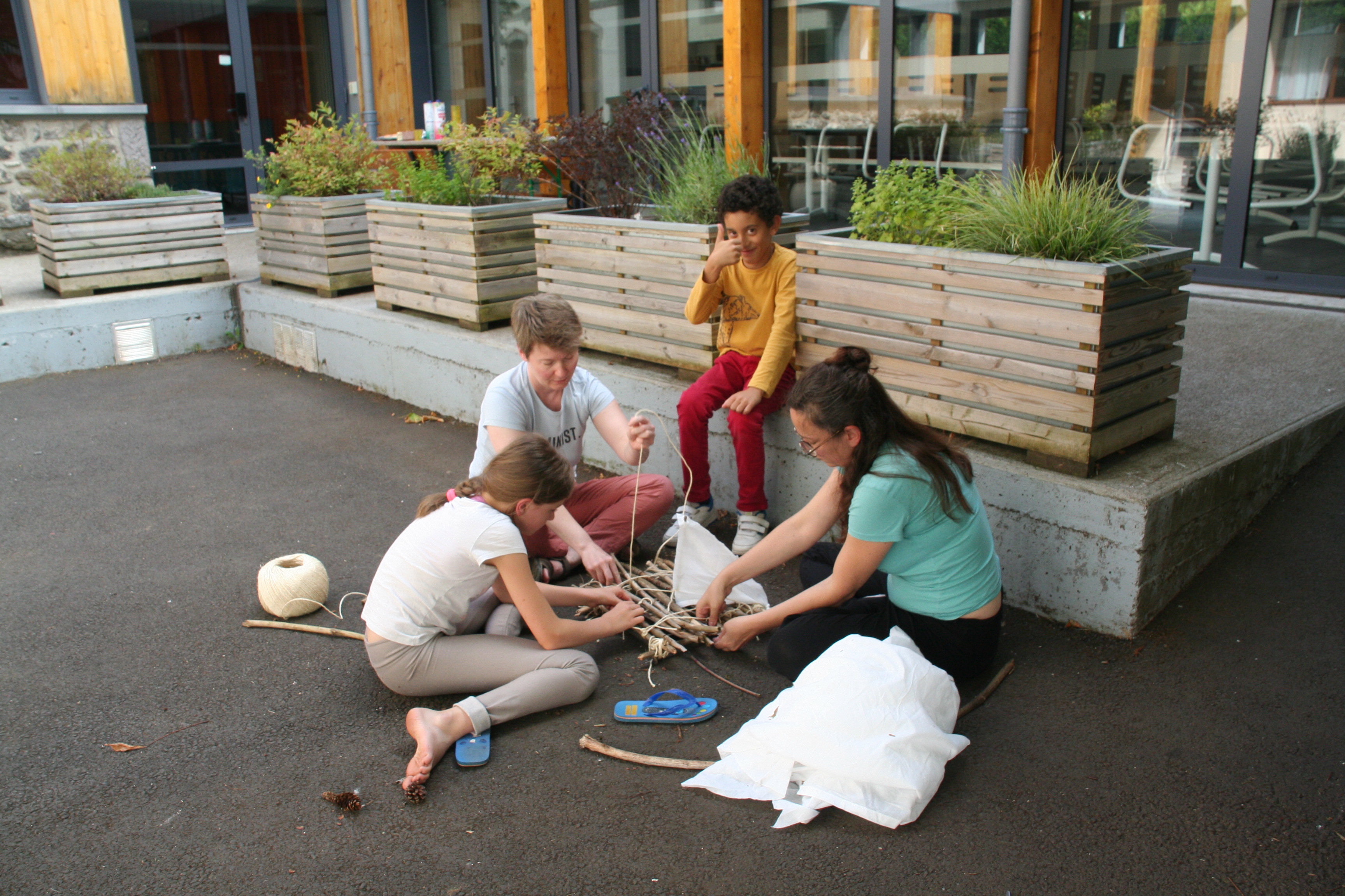 Nous sommes allés au bois des Fraux pour ramasser des branchages afin de faire des radeaux pour notre phase de contact. Nous avons observé la flore spécifique de la zone et les magnifiques paysages. Sur le chemin nous avons pu gouter à de délicieuses myrtilles et framboises sauvages.