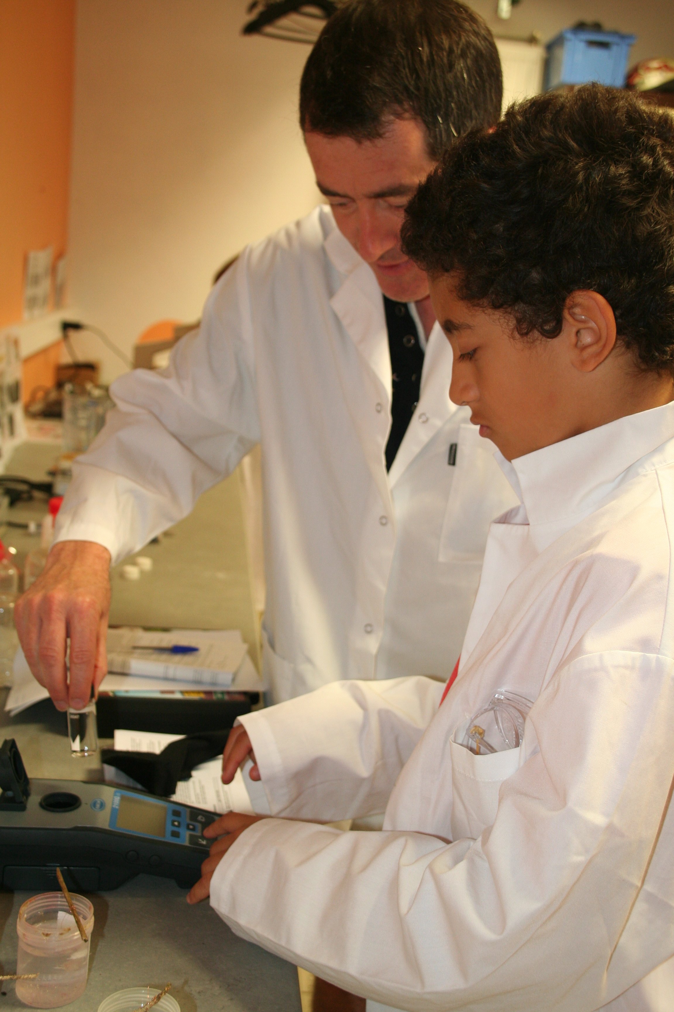 Ensuite nous avons analysé l’eau de prélèvement dans notre laboratoire : les nitrates et la turbidité, c’est à dire la quantité de la matière en suspension dans l’eau.