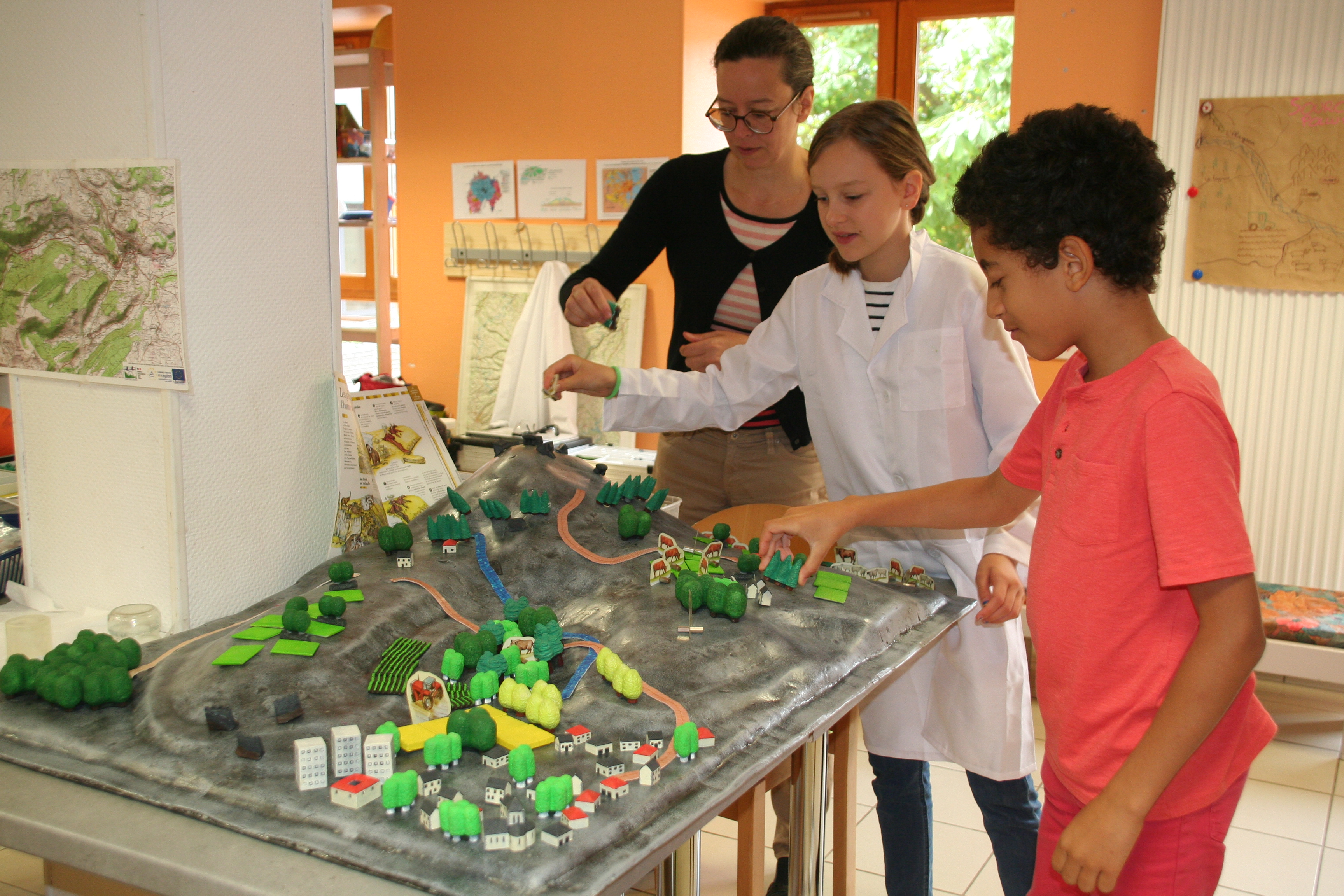 Nous avons profité d’installer et completer une magnifique maquette prêté par le Parc Naturel d’Auvergne qui représentait le paysage du Cantal au fil du temps. Bien sympa !